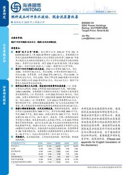 [个股研究]600886_国投电力2025年三季报点评:燃料成本对冲来水波动,现金流显著改善(银创产业通www.chanyetong.net)