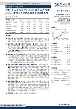 [个股研究]003010_2025年 三 季 报 点 评:25Q3自 有 品 牌 同 增345%,看好多品牌快速放量带动业绩高增(银创产业通www.chanyetong.net)