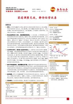 [个股研究]002991_渠道调整见效,静待经营改善(银创产业通www.chanyetong.net)