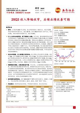 [个股研究]603027_2025年三季报点评:25Q3收入降幅收窄,后续业绩改善可期(银创产业通www.chanyetong.net)