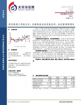 [个股研究]605296_神农集团三季报点评:生猪养殖业务发展良好,出栏量持续增长(银创产业通www.chanyetong.net)