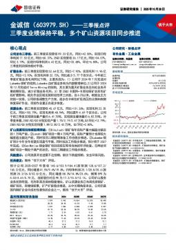 [个股研究]603979_三季报点评:三季度业绩保持平稳,多个矿山资源项目同步推进(银创产业通www.chanyetong.net)