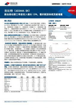 [个股研究]603444_新品推动第三季度收入增长129%,看好新游持续贡献增量(银创产业通www.chanyetong.net)