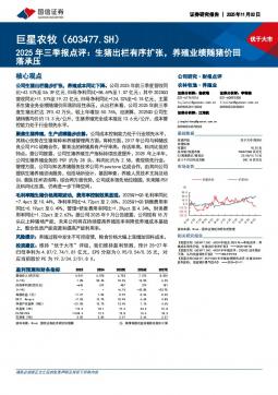 [个股研究]603477_2025年三季报点评:生猪出栏有序扩张,养殖业绩随猪价回落承压(银创产业通www.chanyetong.net)