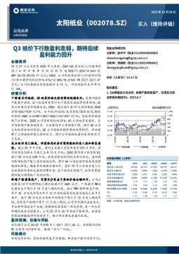[个股研究]002078_Q3纸价下行致盈利走弱,期待后续盈利能力回升(银创产业通www.chanyetong.net)
