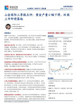 [个股研究]000975_山金国际三季报点评:黄金产量小幅下滑,H股上市即将落地(银创产业通www.chanyetong.net)