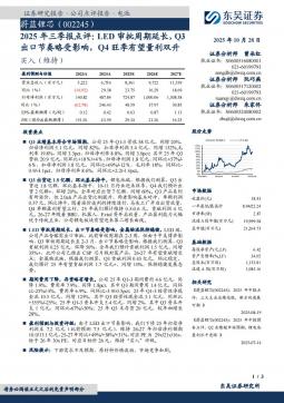 [个股研究]002245_2025年三季报点评:LED审批周期延长,Q3出口节奏略受影响,Q4旺季有望量利双升(银创产业通www.chanyetong.net)