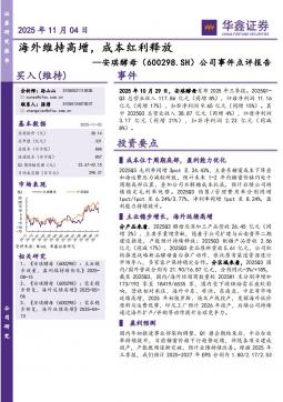 [个股研究]600298_公司事件点评报告:海外维持高增,成本红利释放(银创产业通www.chanyetong.net)