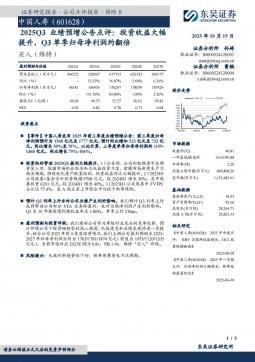 [个股研究]601628_2025Q3业绩预增公告点评:投资收益大幅提升,Q3单季归母净利润约翻倍(银创产业通www.chanyetong.net)