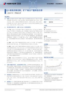 [个股研究]601899_2025年三季报点评:Q3业绩表现亮眼,扩产项目产能释放在即(银创产业通www.chanyetong.net)