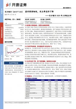 [个股研究]601577_长沙银行2025年三季报点评:盈利保持韧性,关注率边际下降(银创产业通www.chanyetong.net)