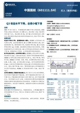 [个股研究]601111_Q3收益水平下降,业绩小幅下滑(银创产业通www.chanyetong.net)