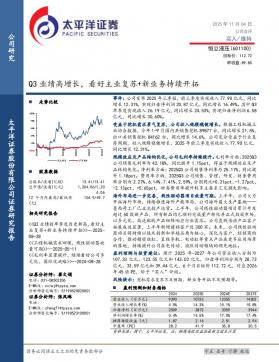 [个股研究]601100_Q3业绩高增长,看好主业复苏+新业务持续开拓(银创产业通www.chanyetong.net)