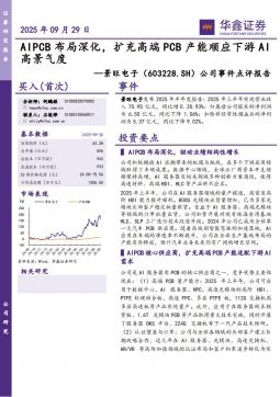 [个股研究]603228_公司事件点评报告:AIPCB布局深化,扩充高端PCB产能顺应下游AI高景气度(银创产业通www.chanyetong.net)