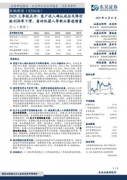[个股研究]920418_2025三季报点评:客户收入确认延后及降价致利润率下滑,看好机器人等新兴赛道增量:苏轴股份(920418)(银创产业通www.chanyetong.net)
