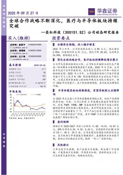 [个股研究]300151_公司动态研究报告:全球合作战略不断深化,医疗与半导体板块持续突破(银创产业通www.chanyetong.net)