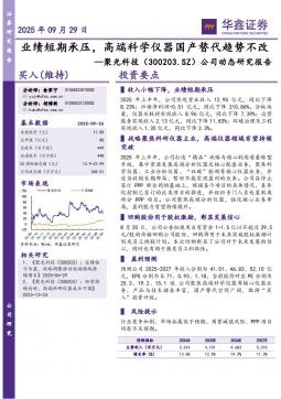[个股研究]300203_公司动态研究报告:业绩短期承压,高端科学仪器国产替代趋势不改(银创产业通www.chanyetong.net)