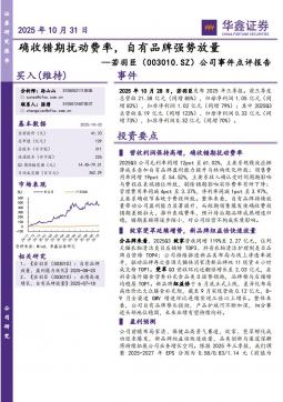 [个股研究]003010_25Q3归母净利润同比增长73% 自有品牌表现强劲(银创产业通www.chanyetong.net)