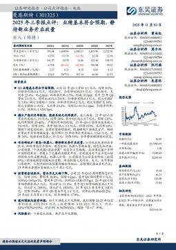 [个股研究]301325_2025年三季报点评:业绩基本符合预期,静待新业务开启放量(银创产业通www.chanyetong.net)