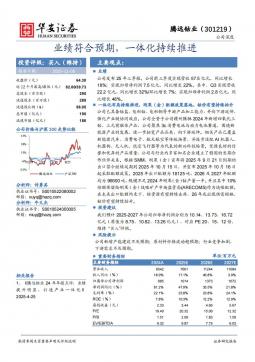 [个股研究]301219_业绩符合预期,一体化持续推进(银创产业通www.chanyetong.net)