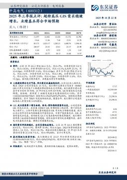 [个股研究]600312_2025年三季报点评:超特高压GIS需求稳健增长,业绩基本符合市场预期(银创产业通www.chanyetong.net)
