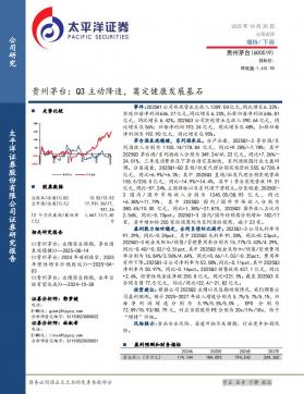[个股研究]600519_贵州茅台:Q3主动降速,奠定健康发展基石(银创产业通www.chanyetong.net)