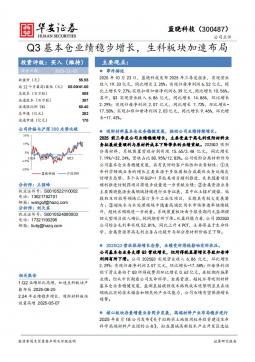 [个股研究]300487_Q3基本仓业绩稳步增长,生科板块加速布局(银创产业通www.chanyetong.net)