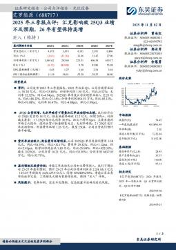 [个股研究]688717_2025年三季报点评:汇兑影响致25Q3业绩不及预期,26年有望保持高增(银创产业通www.chanyetong.net)