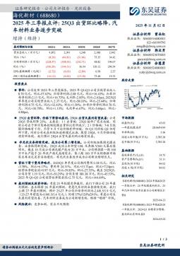 [个股研究]688680_2025年三季报点评:25Q3出货环比略降,汽车材料业务逐步突破(银创产业通www.chanyetong.net)