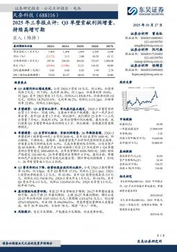 [个股研究]688116_2025年三季报点评:Q3单壁贡献利润增量,持续高增可期(银创产业通www.chanyetong.net)