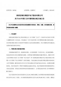 [投资者关系]300760_2025-10-30-迈瑞医疗-关于2025年第三次中期利润分配方案公告(银创产业通www.chanyetong.net)