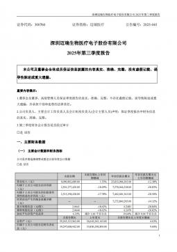 [投资者关系]300760_2025-10-30-迈瑞医疗-2025年三季度报告(银创产业通www.chanyetong.net)