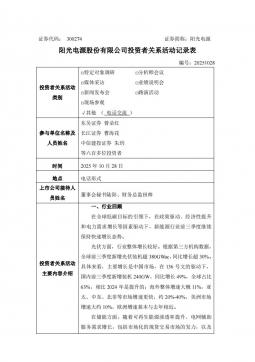 [投资者关系]300274_2025-10-29-阳光电源-300274阳光电源投资者关系活动记录表20251029(银创产业通www.chanyetong.net)