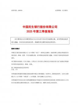 [投资者关系]600016_2025-10-31-民生银行-中国民生银行2025年第三季度报告(银创产业通www.chanyetong.net)