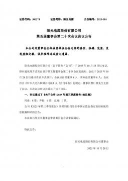 [投资者关系]300274_2025-10-29-阳光电源-第五届董事会第二十次会议决议公告(银创产业通www.chanyetong.net)