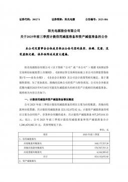 [投资者关系]300274_2025-10-29-阳光电源-关于2025年前三季度计提信用减值准备和资产减值准备的公告(银创产业通www.chanyetong.net)