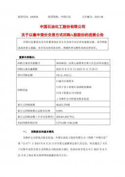 [投资者关系]600028_2025-11-05-中国石化-关于以集中竞价交易方式回购A股股份的进展公告(银创产业通www.chanyetong.net)