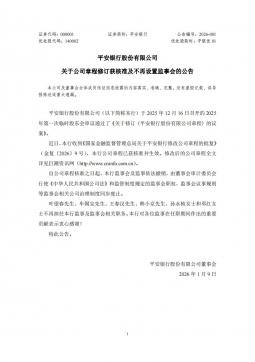 [投资者关系]000001_2026-01-09-平安银行-关于公司章程修订获核准及不再设置监事会的公告(银创产业通www.chanyetong.net)