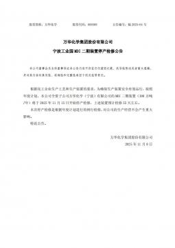 [投资者关系]600309_2025-11-08-万华化学-万华化学宁波工业园MDI二期装置停产检修公告(银创产业通www.chanyetong.net)