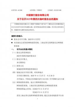 [投资者关系]601988_2025-11-08-中国银行-中国银行股份有限公司关于召开2025年第四次临时股东会的通知(银创产业通www.chanyetong.net)