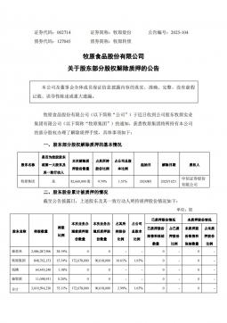 [投资者关系]002714_2025-11-25-牧原股份-关于股东部分股权解除质押的公告(银创产业通www.chanyetong.net)