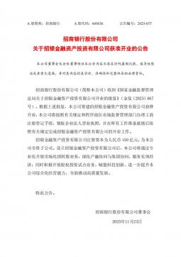 [投资者关系]600036_2025-11-24-招商银行-招商银行股份有限公司关于招银金融资产投资有限公司获准开业的公告(银创产业通www.chanyetong.net)
