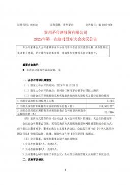 [投资者关系]600519_2025-11-29-贵州茅台-贵州茅台2025年第一次临时股东大会决议公告(银创产业通www.chanyetong.net)
