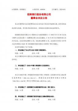 [投资者关系]600036_2025-10-30-招商银行-招商银行股份有限公司董事会决议公告(银创产业通www.chanyetong.net)