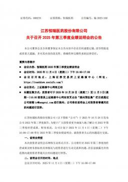 [投资者关系]600276_2025-10-28-恒瑞医药-恒瑞医药关于召开2025年第三季度业绩说明会的公告(银创产业通www.chanyetong.net)