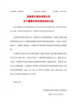 [投资者关系]600036_2025-10-29-招商银行-招商银行股份有限公司关于董事任职资格核准的公告(银创产业通www.chanyetong.net)
