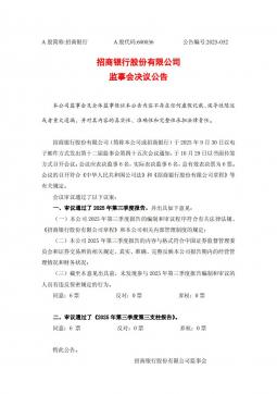 [投资者关系]600036_2025-10-30-招商银行-招商银行股份有限公司监事会决议公告(银创产业通www.chanyetong.net)