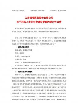 [投资者关系]600276_2025-10-28-恒瑞医药-恒瑞医药关于药品上市许可申请获受理的提示性公告(银创产业通www.chanyetong.net)