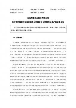 [投资者关系]002475_2025-10-13-立讯精密-关于收购闻泰科技股份有限公司部分子公司股权及资产的进展公告(银创产业通www.chanyetong.net)