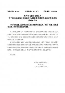 [投资者关系]002230_2025-10-18-科大讯飞-关于2025年度向特定对象发行A股股票申请获得深圳证券交易所受理的公告(银创产业通www.chanyetong.net)